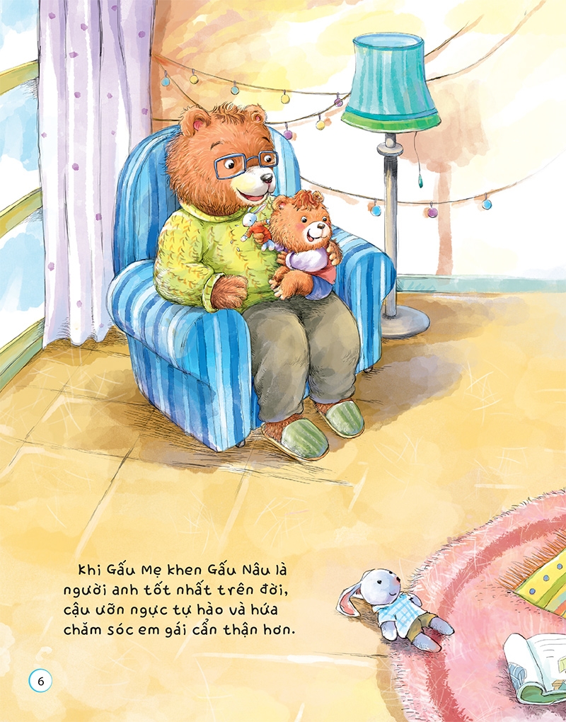 Trong một lần trông em giúp bố mẹ, Gấu Nâu vô ý làm em ngã xuống đất. Liệu Gấu Nâu có đủ dũng cảm để nhận lỗi không nhỉ?