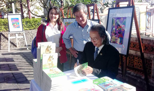 Bùi Tự Lực ký tặng sách trong buổi ra mắt tác phẩm Chó hoang.