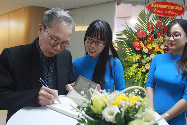 Nhà văn Ma Văn Kháng kí tặng bạn đọc trong buổi ra mắt sách “Mãi mãi một thời Thiếu sinh quân”