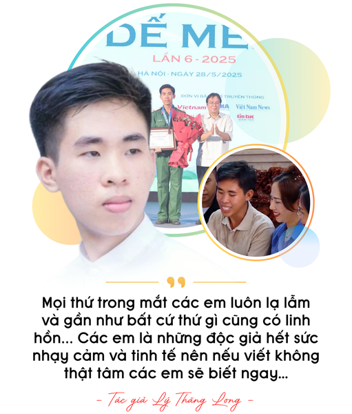 Còn Lý Thăng Long (sinh năm 2000) cũng mang đến một hành trình đầy xúc cảm. Mọi thứ bắt đầu từ mùa hè năm lớp 4, khi Long lần đầu tiên viết một bài thơ đọc cho mẹ nghe và thấy mẹ mỉm cười hạnh phúc. Từ những trang thơ, nhật ký, Long tiếp tục viết, rồi một ngày đọc Dế mèn phiêu lưu ký và viết một câu chuyện khác tên Họa mi phiêu lưu ký. Nhưng niềm vui ban đầu nhanh chóng nhường chỗ cho nỗi thất vọng: "Tôi nhận ra đó không phải là văn, vì cảm thấy na ná quá. Thất vọng, tôi không dám viết nữa".
