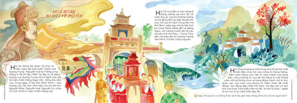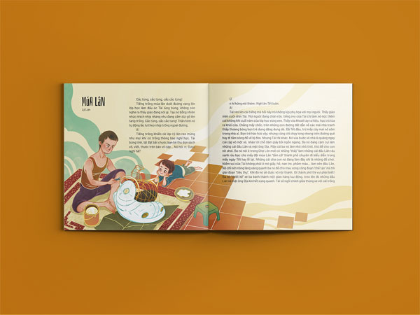 “Kể chuyện Tết Nguyên đán” sẽ kể cho em nghe từ phong tục ngày Tết: nghi lễ thờ phụng cho đến công việc sửa soạn sắm Tết, dọn nhà, làm cỗ… “Kể chuyện Tết Nguyên đán” sẽ giúp em cảm nhận được hệ sinh thái Tết sinh động từ cội nguồn tâm linh với các câu chuyện cổ tích, sự tích Táo quân, sự tích cây nêu ngày Tết, những tục lệ đẹp xông đất, mừng tuổi, xin chữ… đến văn hóa Tết với tranh Tết, câu đối Tết, những lễ hội mùa xuân, gói bánh chưng, bày mâm ngũ quả…
