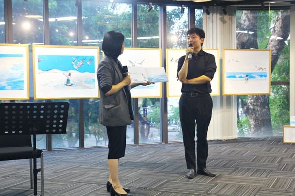Với sự dẫn dắt của giám tuyển sách thiếu nhi Phạm Thị Hoài Anh, các độc giả tham gia buổi trò chuyện có dịp phiêu lưu cùng các trang sách của tác phẩm Cơn sóng. Từ đó, người xem cùng cảm nhận những biến chuyển sinh động của cảm xúc trong mỗi góc nhìn, từng nhịp thở, khám phá đường biên, và những khoảnh lặng trong tranh minh hoạ của Suzy Lee.