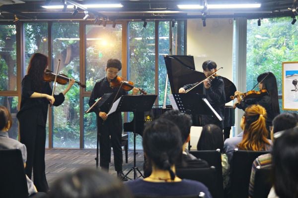 Màn trình diễn các khúc biến tấu đến từ các nghệ sĩ của Viện Âm nhạc trẻ Việt Nam (VYMI). Ảnh: Rei.