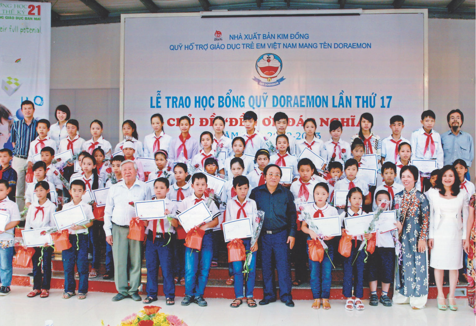 (*) Trường tiểu học Kim Đồng, thôn Nà Mạ, Cao Bằng (1996); Phòng học trường Phong Phú, Quận 9, TP.HCM (1998); Phòng học trường tiểu học Tân Quy, Quận 7, TP.HCM (1999); Phòng học trường tiểu học Mèo Vạc, Hà Giang (2000); Phòng học cho trẻ em tật nguyền, Sơn Lạc, Tuyên Quang (2000); Trường mầm non Cường Lợi, huyện Na Rì, Bắc Cạn (2001); Trường mầm non Đình Chu, Lập Thạch, Vĩnh Phú (2001); Trường học cho trẻ em nhiễm chất độc màu da cam, Thái Bình (2001); Trường mầm non Buôn Tai, xã Krông Jin, huyện M’Drăck, tỉnh Đăk Lăk (2001); Trường tiểu học Đăk Rông, Quảng Trị (2002); Trường mầm non Cửu Long, Lương Sơn, Hòa Bình (2002).
