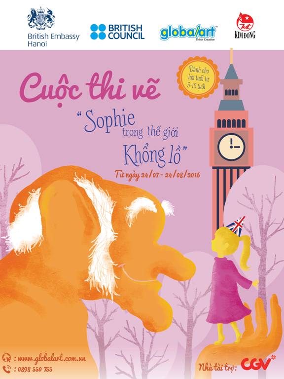Nhân dịp kỉ niệm 100 năm ngày sinh của nhà văn Roald Dahl (1916 – 2016) và ra mắt bộ phim The BFG, Đại sứ quán Anh tại Hà Nội, Hội đồng Anh, Global Art và Nhà xuất bản Kim Đồng phối hợp tổ chức cuộc thi vẽ “SOPHIE TRONG THẾ GIỚI KHỔNG LỒ”. Cuộc thi là cơ hội để trẻ em Việt Nam phát triển trí tưởng tượng phong phú của mình. Hy vọng cuộc thi sẽ truyền cảm hứng cho trẻ em Việt Nam nuôi dưỡng những giấc mơ lớn.