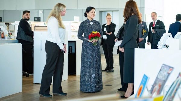 Phu nhân Tổng Bí thư Tô Lâm, bà Ngô Phương Ly, bày tỏ vui mừng tới thăm Thư viện Oodi - không gian văn hóa sáng tạo và rất ấn tượng với không gian bài trí cùng hệ thống tài liệu đồ sộ, hiện đại của Thư viện; cảm ơn Phu nhân Suzanne Innes-Stubb và Ban lãnh đạo Thư viện đã đón tiếp đoàn nồng hậu.