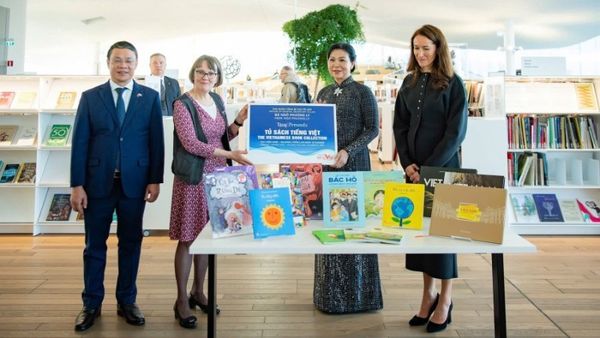 Nhân dịp này, bà Ngô Phương Ly thay mặt Đoàn Việt Nam trao tặng Thư viện Oodi “Tủ sách tiếng Việt” gồm hơn 120 đầu sách chọn lọc, gần 160 quyển sách tiếng Việt và song ngữ theo 4 nhóm chủ đề chính: Sách văn học-nghệ thuật với các tác phẩm văn học kinh điển của Việt Nam, truyện ngắn hiện đại, tuyển tập thơ và truyện cổ tích Việt Nam, giúp bạn đọc nước ngoài và các cháu thiếu nhi kiều bào hiểu thêm về ngôn ngữ và tâm hồn Việt.