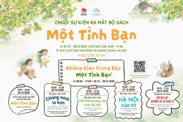 Để giới thiệu tới đông đảo bạn đọc về bộ sách “Một tình bạn”, Nhà xuất bản Kim Đồng phối hợp cùng ICBC tổ chức tuần lễ giới thiệu từ ngày 20/12/2025 đến ngày 28/12/2025. Sự kiện gồm hoạt động trưng bày xuyên suốt cùng các buổi đọc, workshop với sự tham gia của các tác giả, giúp cho các tác phẩm đến gần hơn với bạn đọc nhỏ tuổi Việt Nam.