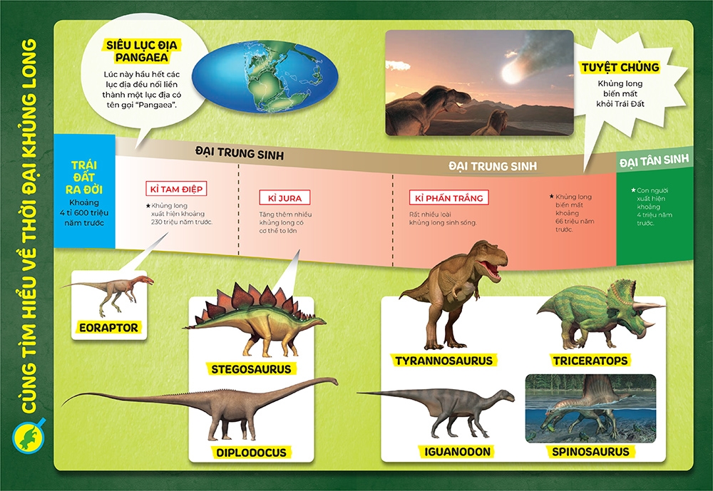 Khủng long đã từng “thống trị” Trái đất khoảng 230 triệu năm trước với nhiều chủng loại, kích cỡ khác nhau. Thông qua việc nghiên cứu hoá thạch, các nhà khoa học đã khám phá được nhiều thông tin gây sửng sốt về loài bò sát đặc biệt này. Hãy cùng tìm hiểu những thông tin ấy trong cuốn sách lí thú này nhé!