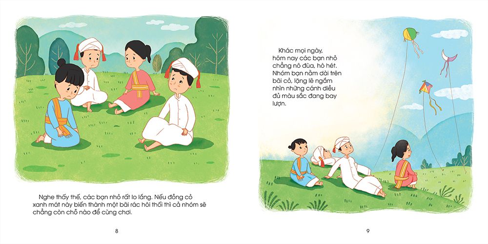 Các bạn nhỏ thường tập trung ở đồng cỏ trước làng để chơi. Rồi một ngày, cả nhóm buồn thiu khi nghe tin chỗ vui chơi này sắp bị biến thành bãi rác. Phải làm sao đây?