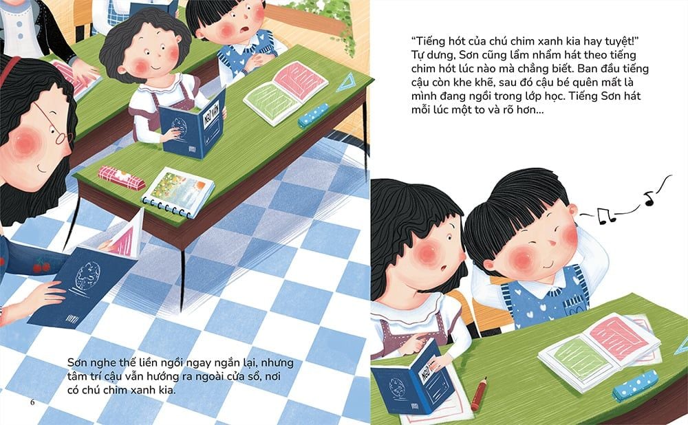 Đang ngồi bên cửa sổ, Sơn bỗng nghe thấy một tràng tiếng chim hót lảnh lót. Tự dưng, Sơn cũng lẩm nhẩm hát theo tiếng chim hót lúc nào mà chẳng biết. Ô, hình như Sơn đã vi phạm nội quy trong lớp học mất rồi. Câu chuyện sẽ diễn ra thế nào nhỉ? Các bạn hãy cùng theo dõi nhé!
