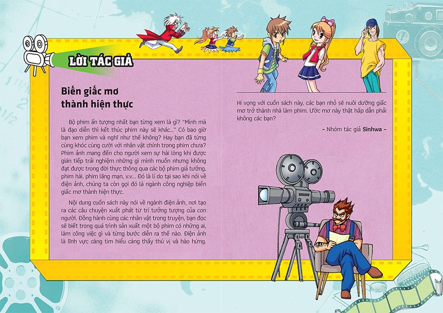 Nội dung cuốn sách này nói về ngành điện ảnh, nơi tạo ra các câu chuyện xuất phát từ trí tưởng tượng của con người. Đồng hành cùng các nhân vật trong truyện, bạn đọc sẽ biết trong quá trình sản xuất một bộ phim có những ai, làm công việc gì và từng bước diễn ra thế nào. Hi vọng với cuốn sách này, các bạn nhỏ sẽ nuôi dưỡng giấc mơ trở thành nhà làm phim. Ước mơ này thật hấp dẫn phải không các bạn?