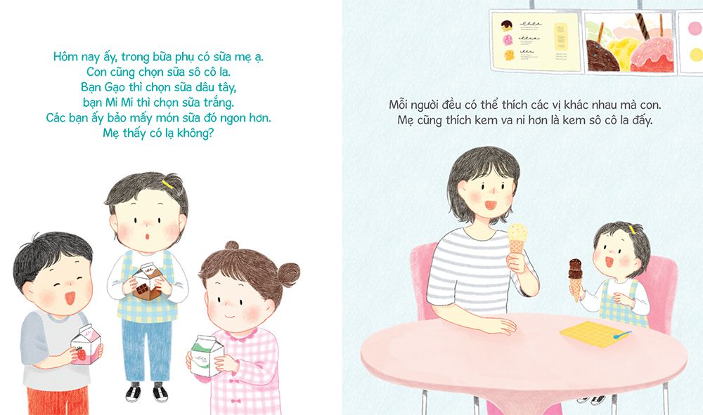 “Những đứa trẻ cảm thấy thế giới xung quanh vô cùng rộng lớn và kì thú, các con mong muốn được kết bạn với tất cả mọi người. Thế nhưng việc kết thân không hề dễ dàng, bởi mỗi người xung quanh con đều có những cá tính khác nhau. Lúc đó, bố mẹ hãy nói cho con biết rằng ta vẫn có thể làm bạn với những người rất khác biệt. Khi chơi hoà đồng với nhiều bạn xung quanh, đứa trẻ sẽ được sống một cuộc sống ngập tràn sắc màu tươi vui.”
