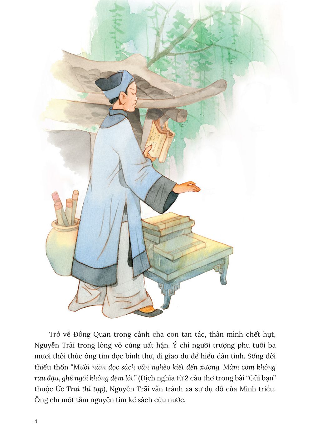 Đó là lời văn của người anh hùng cứu quốc ở thế kỉ XV - Nguyễn Trãi. Ông là nhà chính trị, quân sự, ngoại giao, là quân sư đắc lực của chủ tướng Lê Lợi trong cuộc kháng chiến 10 năm gian khổ chống quân Minh (1418 - 1427). Không chỉ “lấy chí nhân để thay cường bạo” trong tư tưởng quốc gia đại sư, ông còn là một thi nhân thương dân, yêu nước.