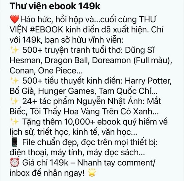 Ebook (sách điện tử) giúp tiếp cận nhiều đối tượng độc giả, tạo điều kiện cho những người hay di chuyển có thể dễ dàng tìm đọc những cuốn sách yêu thích mọi lúc, mọi nơi. Thế nhưng, sự tiện lợi cũng tạo ra kẽ hở để các đối tượng lừa đảo người tiêu dùng.