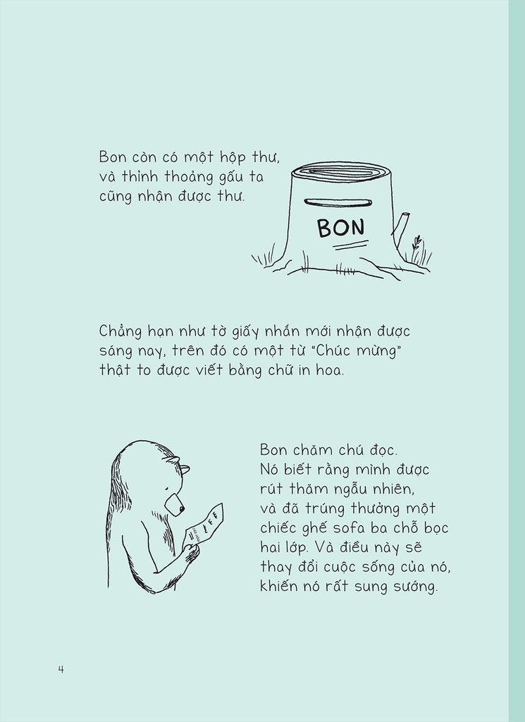 Trong rừng xanh, gấu Bon và những người bạn của cậu đang tận hưởng những ngày tháng yên bình với những niềm vui nhỏ nhặt mỗi ngày. Những niềm vui ấy được gom góp lại trong 3 tập sách xinh xắn tạo thành một bộ sách tràn ngập tình bạn và niềm hạnh phúc. Hãy cùng bước vào thế giới thường nhật đáng yêu của gấu Bon nhé!