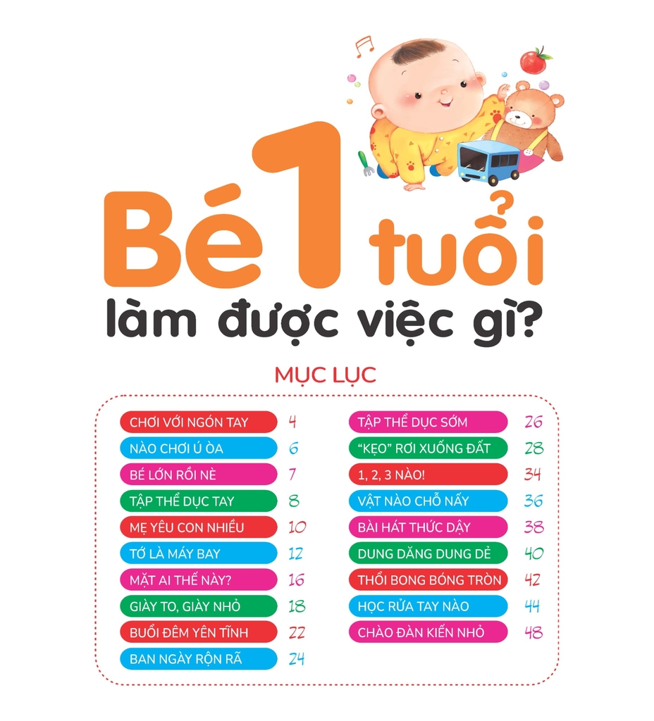 Bộ sách này gồm 12 cuốn tương ứng với các bé 1-2-3 tuổi. Mỗi tuổi có 4 cuốn, giúp cha mẹ đồng hành cùng các bé trong quá trình học nói, học nhận biết, học các kĩ năng phù hợp với từng lứa tuổi để khám phá cuộc sống xung quanh.