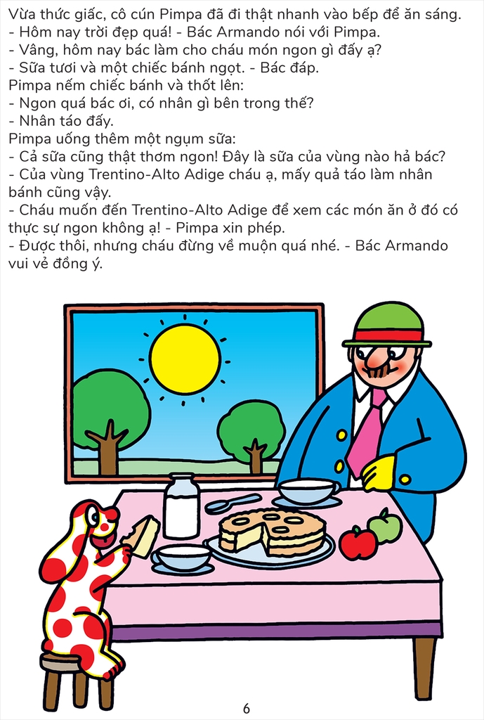 Trong cuốn sách này, cún Pimpa bước vào cuộc du ngoạn thú vị khám phá đất nước Italia đẹp tươi. Hãy cùng theo chân cô chó đốm đỏ thăm thú những cảnh quan phi thường, làm quen những loài động vật đặc trưng, ghé thăm những thành phố xinh đẹp, nếm những món đặc sản và gặp gỡ những danh nhân của đất nước hình chiếc ủng nhé!