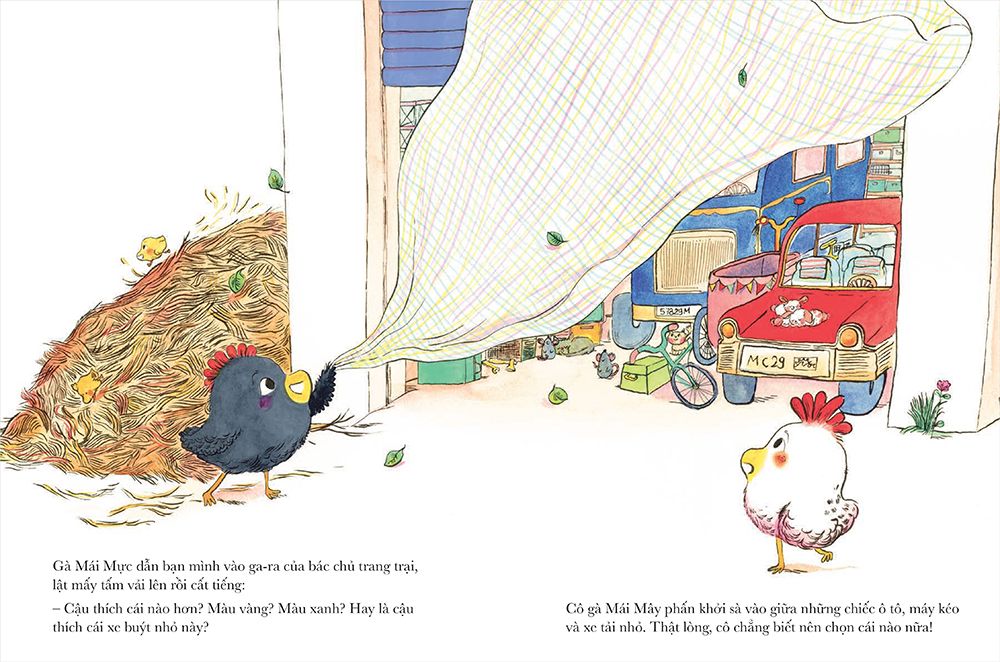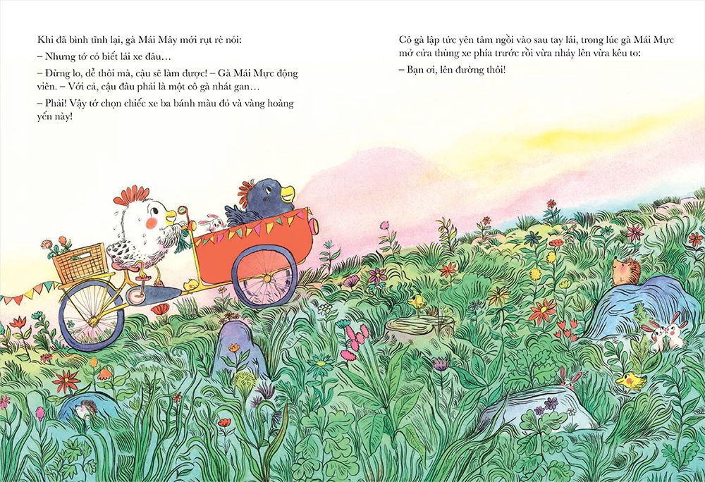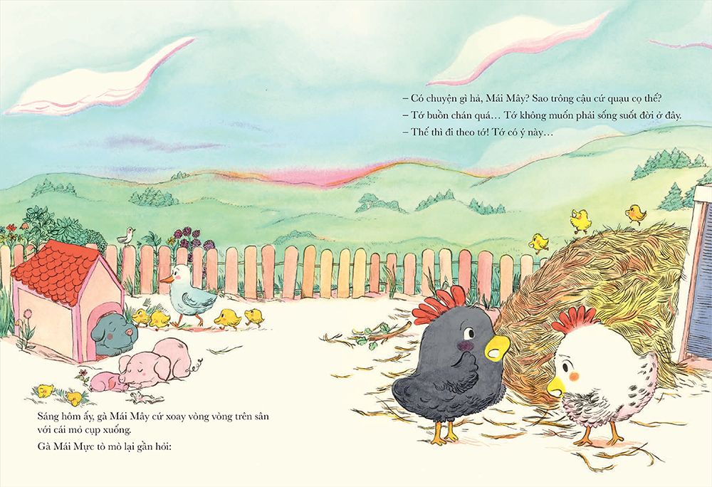 Thế là, khi cô bạn gà Mái Mực đề xuất một chuyến dạo chơi tới Biển lông vũ, Mái Mây cảm thấy sẵn sàng tung cánh ngay…