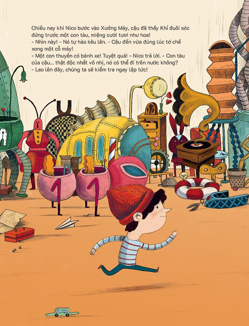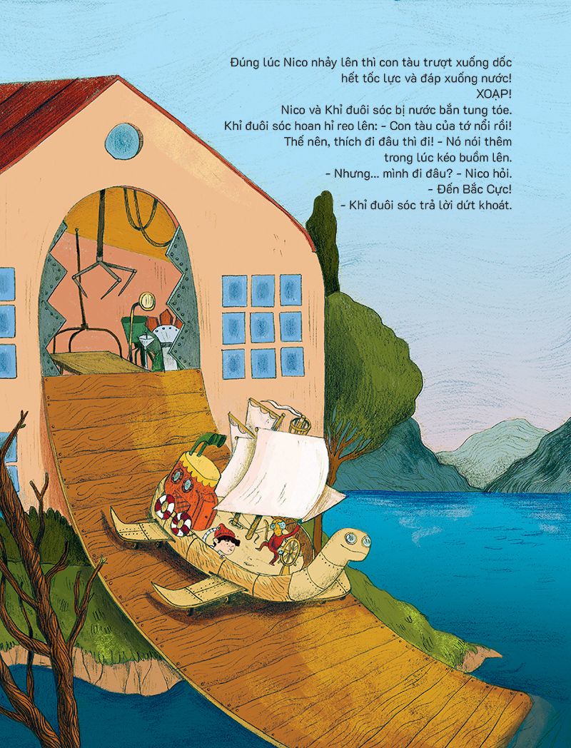 Khi Nico bước vào Xưởng Máy, cậu đã thấy Khỉ đuôi sóc đứng trước một con tàu. Con tàu có thể vừa đi trên cạn, dưới nước và cả trượt trên băng. Thật tiện lợi, bởi cuộc thám hiểm sắp tới của họ chính là đến Bắc Cực!