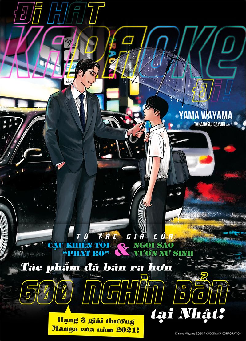 * ĐI HÁT KARAOKE ĐI! là tác phẩm manga oneshot đến từ Yama Wayama – tác giả của NGÔI SAO VƯỜN NỮ SINH và CẬU KHIẾN TÔI “PHÁT RỒ” – đã bán được hơn 600.000 bản in tại Nhật Bản. Tác phẩm giành hạng 3 Giải thưởng Manga của năm 2021 và phim điện ảnh chuyển thể giành giải thưởng Nippon Cinema Award 2024.