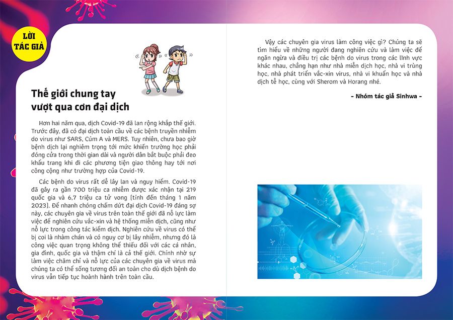 Vậy các chuyên gia virus làm công việc gì? Chúng ta sẽ tìm hiểu về những người đang nghiên cứu và làm việc để ngăn ngừa và điều trị các bệnh do virus trong các lĩnh vực khác nhau, chẳng hạn như nhà miễn dịch học, nhà vi trùng học, nhà phát triển vắc-xin virus, nhà vi khuẩn học và nhà dịch tễ học, cùng với Sherom và Horang nhé!