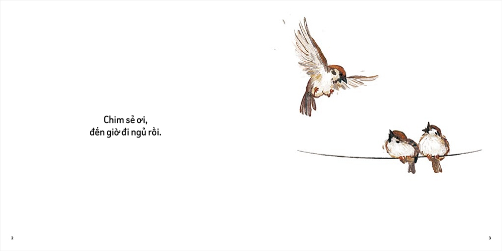 Đến giờ đi ngủ rồi, bầy chim sẻ đậu trên dây điện, túm tụm lại ngủ cạnh nhau; hồng hạc co một chân lên, đầu rúc vào đám lông vũ mà ngủ; lũ rái cá thì nắm tay nhau bồng bềnh trên mặt nước khi ngủ...