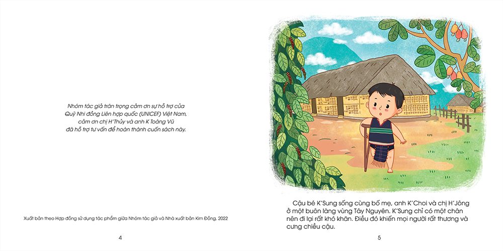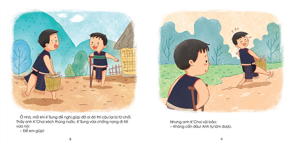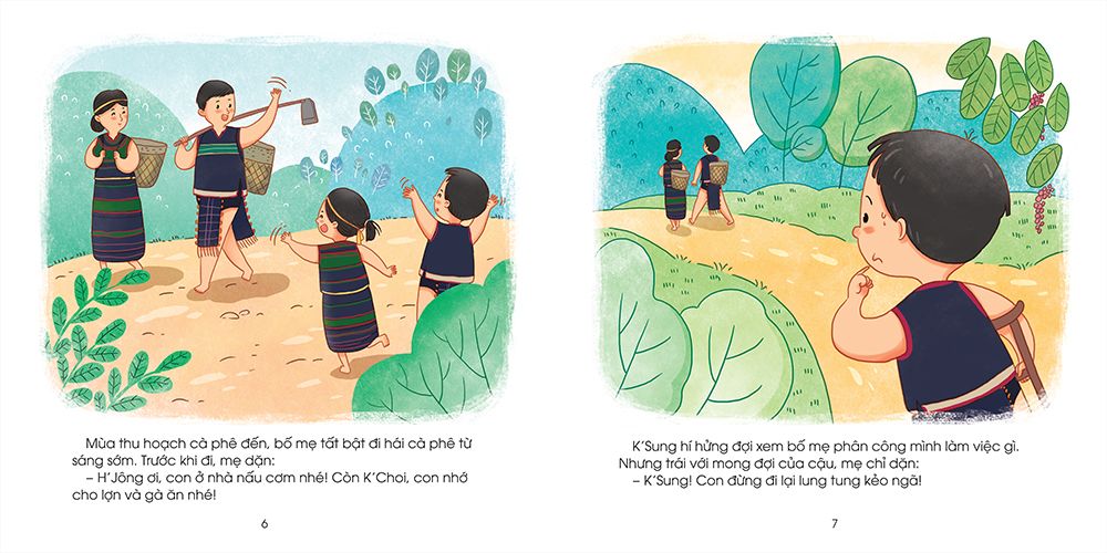 Cậu bé K’Sung bị khuyết tật chân. Mọi người thương và lo cho K’Sung nên không để cậu giúp việc gì. Điều đó có làm cho K’Sung cảm thấy vui không? Hãy xem K’Sung đã làm thế nào để giúp được mọi người nhé!