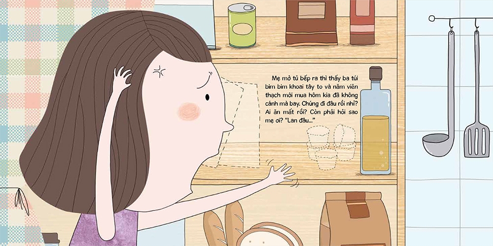 Đồ ăn vặt mẹ vừa mua đã bị Lan ăn hết sạch. Đến bữa ăn chính, Lan nói rằng mình không thấy đói và không muốn ăn cơm nữa. Mặc dù mẹ luôn dặn rằng không được ăn vặt quá nhiều, nhưng Lan lại luôn cảm thấy thèm ăn.