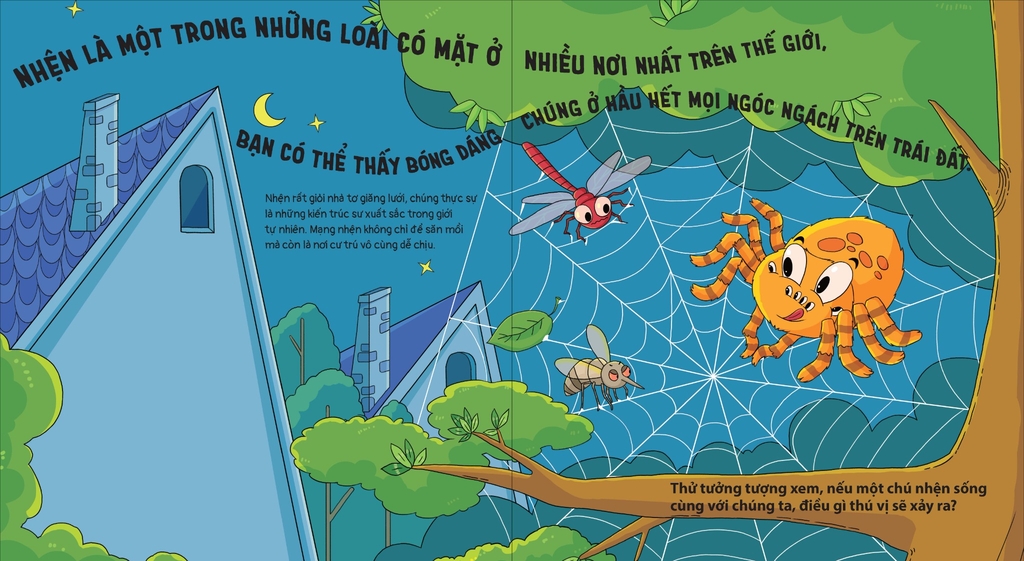 Nhện có biết chơi kéo co, có thích ăn chay, chơi ngoài trời tuyết…? Nhiều thắc mắc khác nữa về nhện sẽ được giải đáp trong cuốn sách hài hước này.