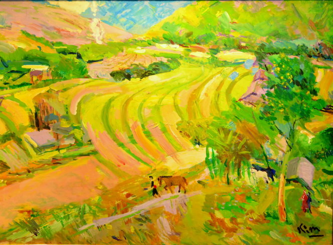 Một bức tranh của họa sĩ Nguyễn Phú Kim trong triển lãm cá nhân “Tranh của Kim”, ngày 25/10/2016 tại Nhà triển lãm Mỹ thuật, số 16 Ngô Quyền, Hà Nội.